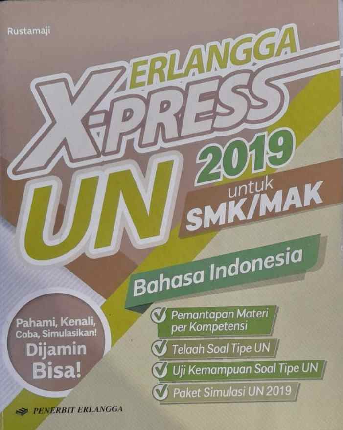 | 290 | 387.615.Rus51 | Erlangga X-Press UN 2019 untuk SMK/MAK Bahasa Indonesia | Rustamaji | Erlangga | 2019 | 1 | 1 | Detil | ||